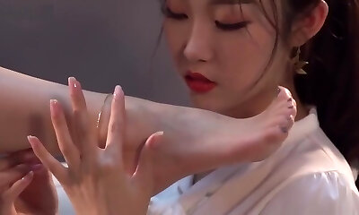 Two Lesbians in Fetish Bath Play With Finger bang & Foot blow