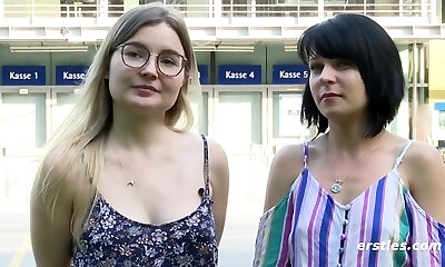 Cable-On sex in German Lesbo Casting with German sexy Girls and Blowjob and boink in her cunny