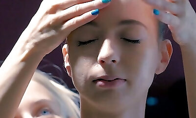 Ash-blonde masseuse massages virgin babe Adley