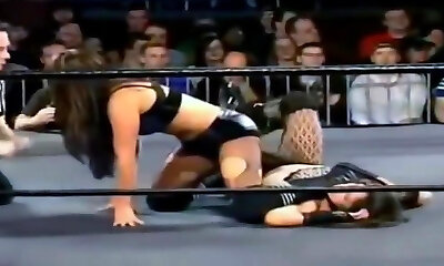 Vendetta and Tia Ling wrestle and then have hook-up on a ring